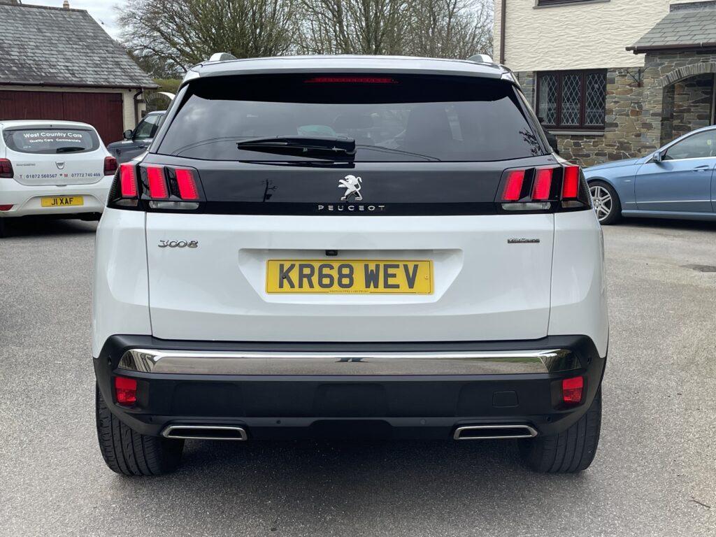 PEUGEOT 3008 1.5 BLUHDI 130 GT LINE, 2018 (68) ONLY 66,000 MILES FROM NEW WITH FULL SERVICE HISTORY IN IMMACULATE CONDITION THROUGHOUT, NEW SHAPE VERSION!! VERY HIGH SPEC VERSION!! STUNNING VEHICLE!! HIGHLY RATED AND SOUGHT AFTER CAR!! HIGH SEATING POSITION, GREAT ALL ROUND VISION AND LOADS OF ROOM THROUGHOUT!! THIS GT LINE MODEL COMES WITH: ELECTRIC WINDOWS, ELECTRIC MIRRORS, HALF LEATHER, WIRLESS PHONE CHARING, REMOTE CENTRAL LOCKING, RADIO, DAB, AIR BAGS, POWER STEERING, MULTI FUNCTIONAL STEERING WHEEL, CRUISE CONTROL, AUTO LIGHTS, FRONT AND REAR PARKING SENSORS, REAR CAMERA, SAT NAV, BLUETOOTH, BLUETOOTH MEDIA, APPS, AIR CON, TRIP COMPUTER AND MORE!! 1.5 TURBO DIESEL ENGINE, LOW INSURANCE, 67+MPG AND LOW ROAD TAX!! RELIABLE AND TROUBLE FREE VEHICLE FOR ITS NEW OWNER! DONT MISS THIS STUNNING, VERY HIGH SPEC, FULL HISTORY, NEW SHAPE PEUGEOT 3008!! THIS CAR COMES WITH 3 MONTHS WARRANTY AND MARCH 2027 M.O.T. FOR ANY FURTHER DETAILS OR TO BOOK A TEST DRIVE PLEASE PHONE WEST COUNTRY CARS ON 01872 560 567